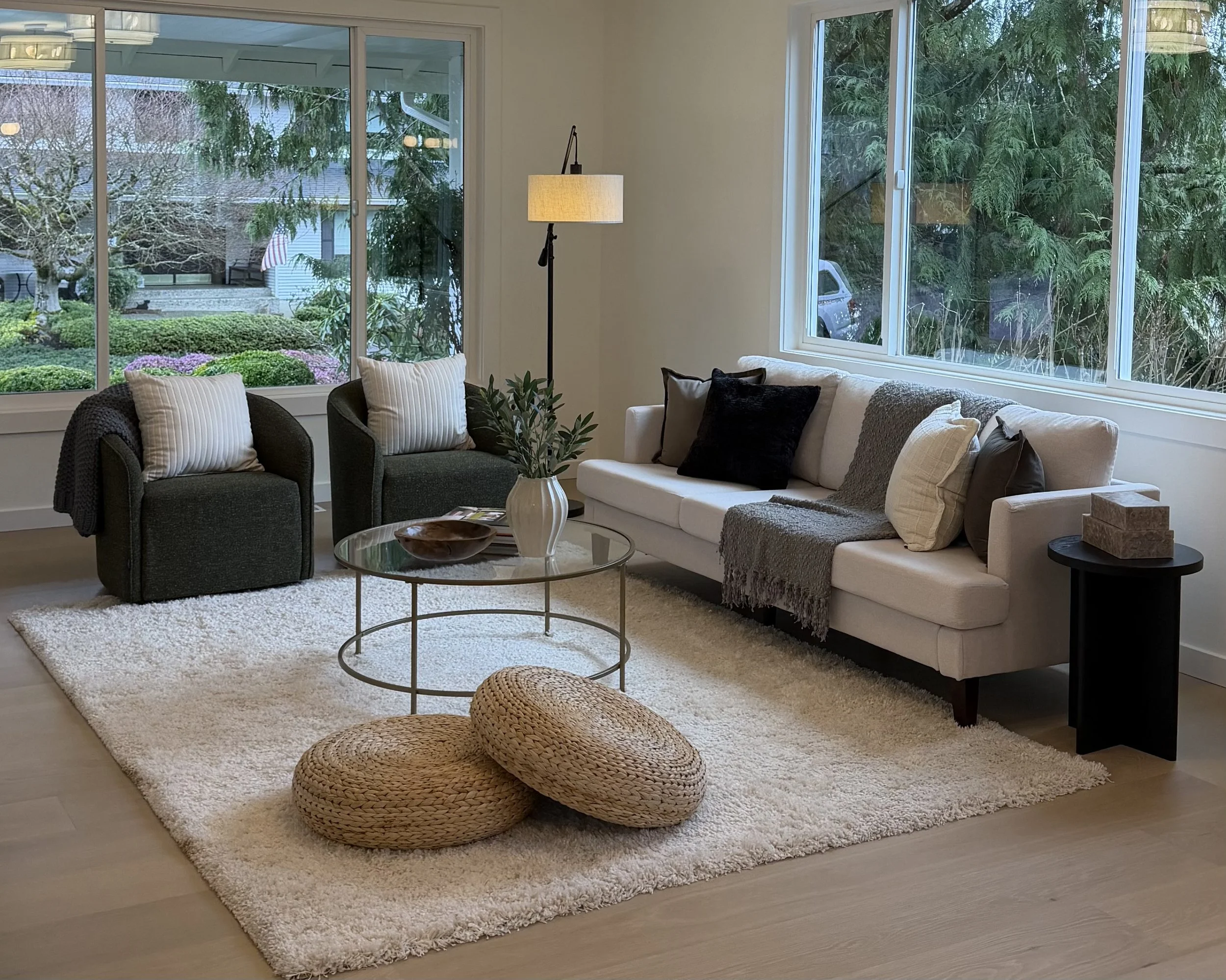 Staging of up to 5 rooms (Living, Kitchen, Dining, 2 Bedrooms)